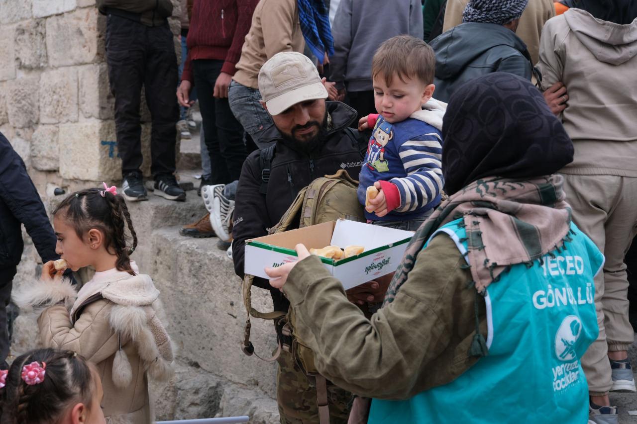 Aynı zamanda YEÇED, gün içinde yapılan kutlamalarda Suriye halkına tatlı dağıtımında bulunarak sevinçlerine ortak oldu.